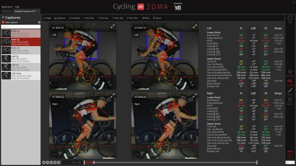 - Analizę biomechaniki rowerzysty – indywidualnych fizycznych parametrów rowerzysty/kolarza